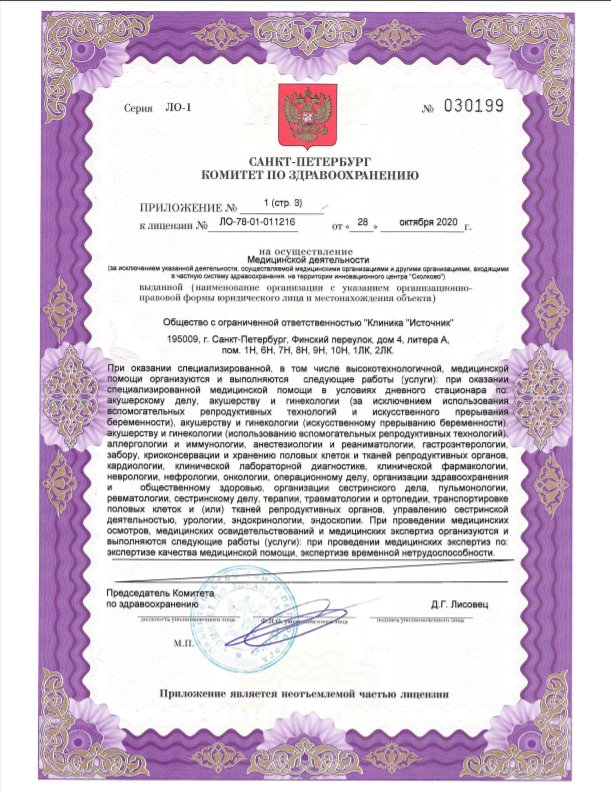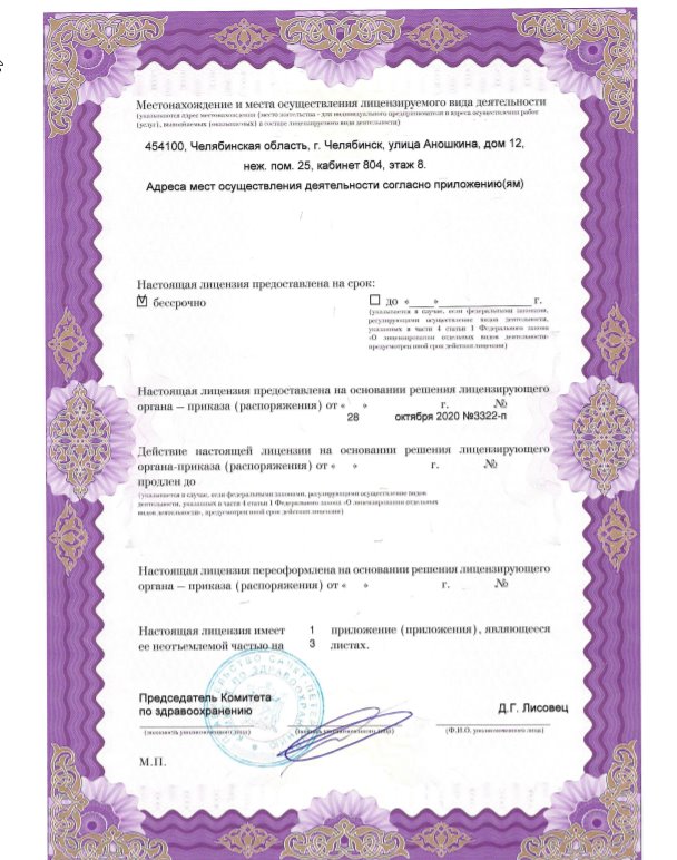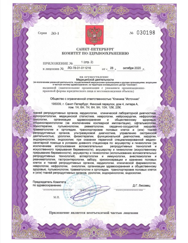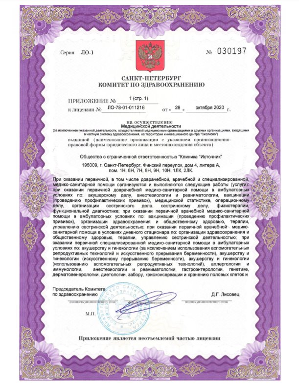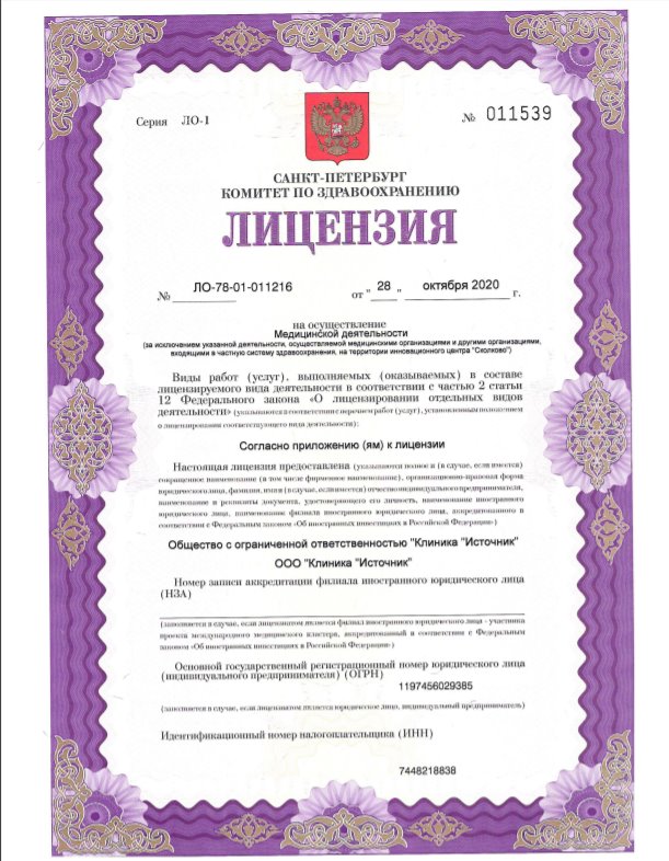 Лицензия на осуществление медицинской деятельности № ЛО-78-01-011216 от 28 октября 2020г.